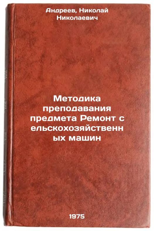 In Russian. Andreev, Nikolai Nikolaevich. Methodology of teaching the subject Repair of agricultural machinery. Moscow: Higher School, 1975. Metodika prepodavaniya predmeta Remont sel'skokhozyaystvennykh mashin. In Russian /Methodology of teaching the subject Repair of agricultural machinery. All images are for identification of editions only. Several books of the same edition may be available. Please feel free to request photos of available books. SKU6905872