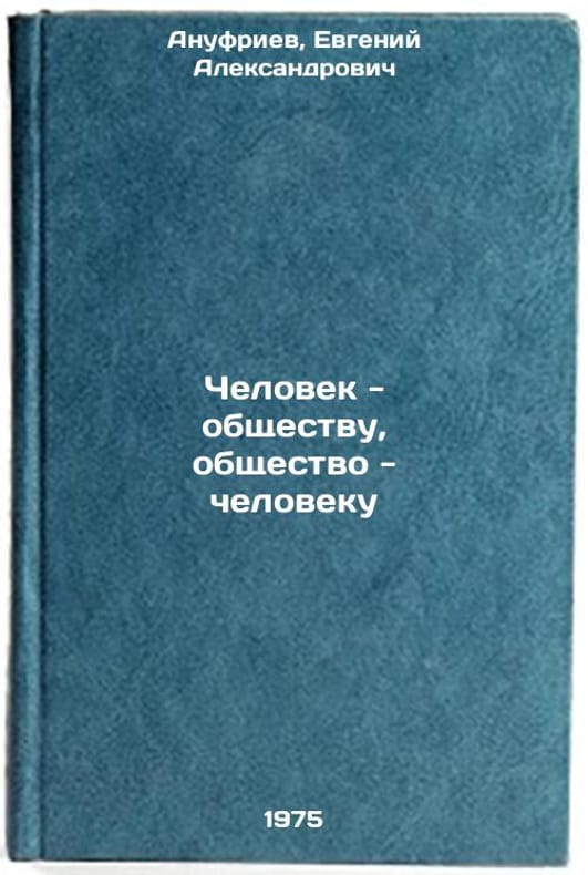 In Russian. Anufriev, Evgeniy Alexandrovich. Man to Society, Society to Man. Moscow: Politizdat, 1975. Chelovek - obshchestvu, obshchestvo - cheloveku. In Russian /Man to society, society to man. All images are for identification of editions only. Several books of the same edition may be available. Please feel free to request photos of available books. SKU6906344