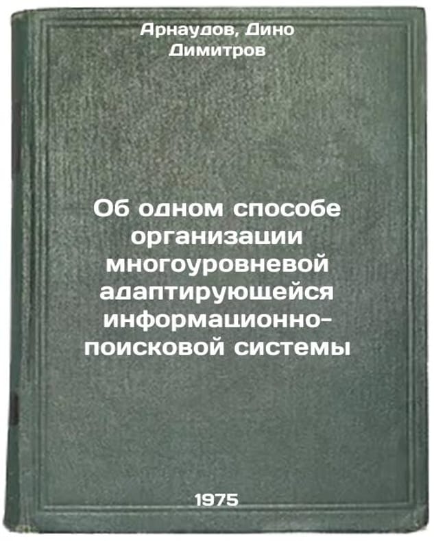 In Russian. Arnaudov, Dino Dimitrov. On one way to organize a multi-level adaptive information search engine. Dubna: JINR, 1975. Ob odnom sposobe organizatsii mnogourovnevoy adaptiruyushcheysya informatsionno-poiskovoy sistemy. In Russian /On one way to organize a multi-level adaptive information search engine. All images are for identification of editions only. Several books of the same edition may be available. Please feel free to request photos of available books. SKU6906651