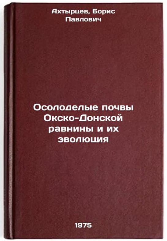 In Russian. Akhtyrtsev, Boris Pavlovich. The saline soils of the Oksko-Don Plain and their evolution. Voronezh: Publishing House of Voronezh, 1975. Osolodelye pochvy Oksko-Donskoy ravniny i ikh evolyutsiya. In Russian /The saline soils of the Oxo-Don plain and their evolution. All images are for identification of editions only. Several books of the same edition may be available. Please feel free to request photos of available books. SKU6907343