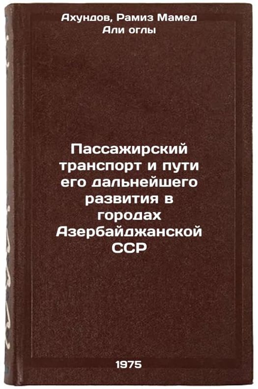 In Russian. Akhundov, Ramiz Mamed Ali oglu. Passenger transport and ways of its further development in the cities of the Azerbaijan SSR. Baku: AzNIINTI, 1975. Passazhirskiy transport i puti ego dal'neyshego razvitiya v gorodakh Azerbaydzhanskoy SSR. In Russian /Passenger transport and ways of its further development in the cities of the Azerbaijan SSR. All images are for identification of editions only. Several books of the same edition may be available. Please feel free to request photos of available books. SKU6907350