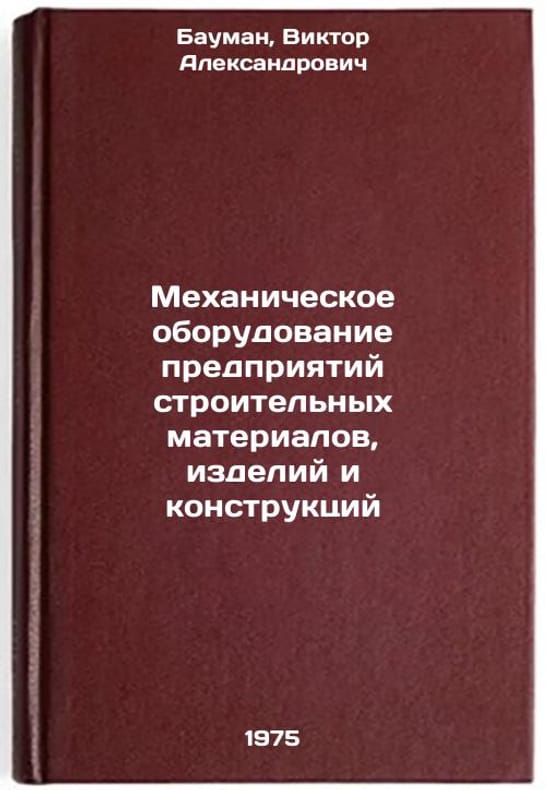 In Russian. Bauman, Viktor Alexandrovich. Mechanical Equipment of Enterprises of Building Materials, Products and Structures. Moscow: Machine Building, 1975. Mekhanicheskoe oborudovanie predpriyatiy stroitel'nykh materialov, izdeliy i konstruktsiy. In Russian /Mechanical Equipment of Construction Materials, Products, and Structures. All images are for identification of editions only. Several books of the same edition may be available. Please feel free to request photos of available books. SKU6908666
