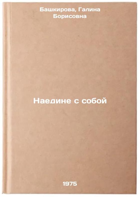 In Russian. Bashkirova, Galina Borisovna. Alone with yourself. Moscow: The Mol Guards, 1975. All images are for identification of editions only. Several books of the same edition may be available. Please feel free to request photos of available books. SKU6908761