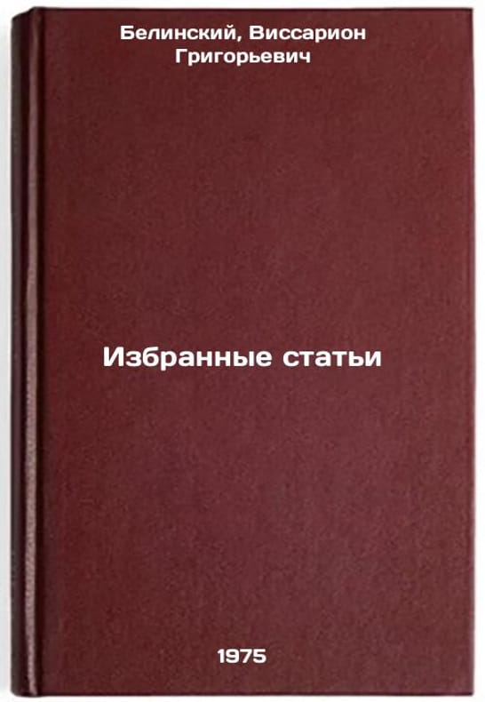 In Russian. Belinsky, Vissarion Grigorievich. Selected Articles. Moscow: Det. lit. 1975. All images are for identification of editions only. Several books of the same edition may be available. Please feel free to request photos of available books. SKU6909109