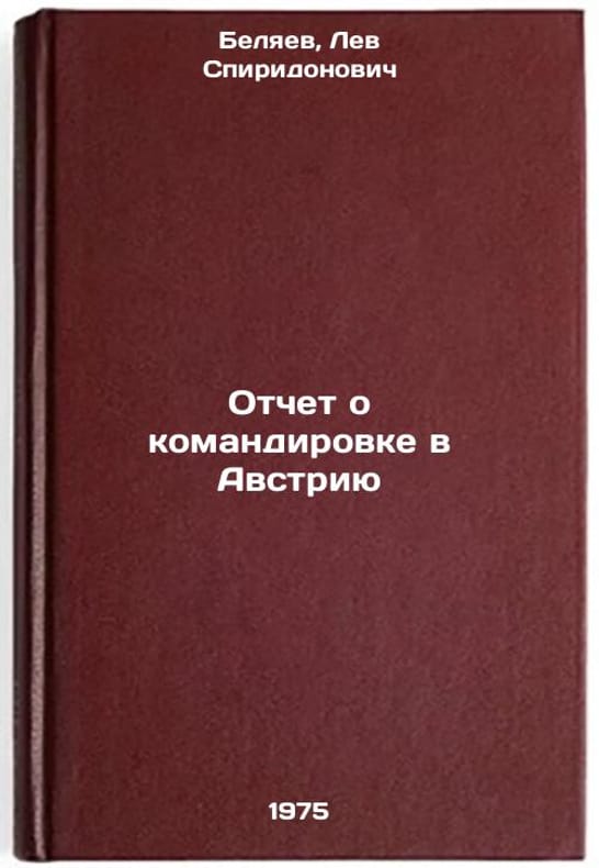 In Russian. Belyaev, Lev Spiridonovich. Report on mission to Austria. Moscow: 1975. All images are for identification of editions only. Several books of the same edition may be available. Please feel free to request photos of available books. SKU6909413