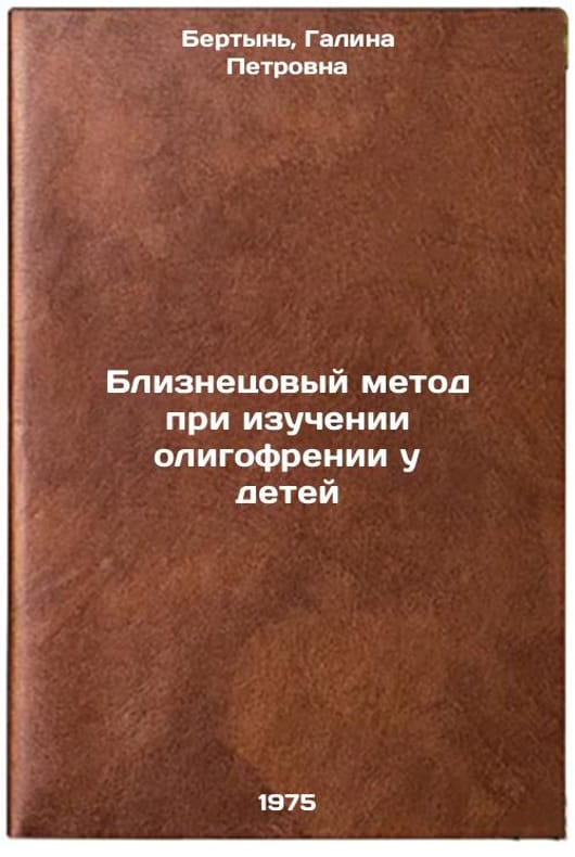 In Russian. Bertyn, Galina Petrovna. Twin Method for the Study of Oligophrenia in Children. Moscow: Pedagogy, 1975. Bliznetsovyy metod pri izuchenii oligofrenii u detey. In Russian /Twin Method for the Study of Oligophrenia in Children. All images are for identification of editions only. Several books of the same edition may be available. Please feel free to request photos of available books. SKU6909747