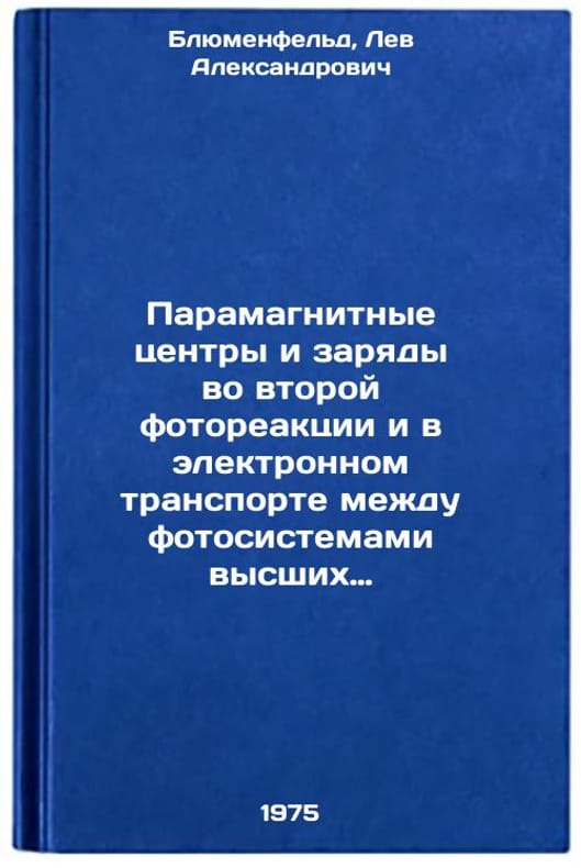 In Russian. Blumenfeld, Lev Alexandrovich. Paramagnetic centers and charges in the second photoreaction and in electronic transport between higher plant photosystems. Paramagnitnye tsentry i zaryady vo vtoroy fotoreaktsii i v elektronnom transporte mezhdu fotosistemami vysshikh rasteniy. In Russian /Paramagnetic centers and charges in the second photoreaction and in electronic transport between higher plant photosystems. All images are for identification of editions only. Several books of the same edition may be available. Please feel free to request photos of available books. SKU6910292