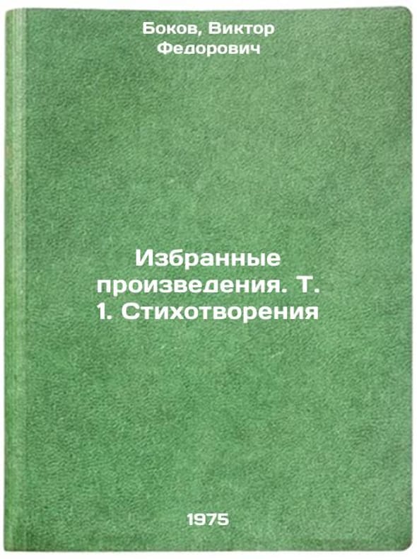 In Russian. Bokov, Viktor Fedorovich. Selected Works. Vol. 1. Poems. Moscow: Art Lit., 1975. Izbrannye proizvedeniya. T. 1. Stikhotvoreniya. In Russian /Selected Works. Vol. 1. Poems. All images are for identification of editions only. Several books of the same edition may be available. Please feel free to request photos of available books. SKU6910747