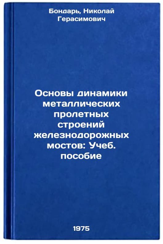 In Russian. Bondar, Nikolai Gerasimovich. Fundamentals of Dynamics of Metal Overpass Structures of Railway Bridges: Textbook. Dnipropetrovsk: DIIT, 1975. Osnovy dinamiki metallicheskikh proletnykh stroeniy zheleznodorozhnykh mostov: Ucheb. posobie. In Russian /Basics of the Dynamics of Metal Railway Bridge Structures: A Textbook. All images are for identification of editions only. Several books of the same edition may be available. Please feel free to request photos of available books. SKU6910980