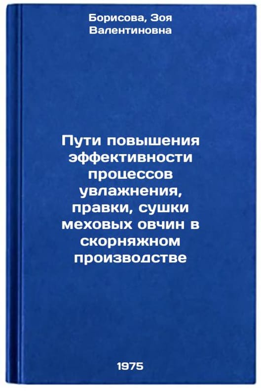 In Russian. Borisova, Zoya Valentinovna. Ways to Increase the Efficiency of Moisturization, Correction, and Drying of Sheepskin Fur in the Corn Industry. Moscow: Light Industry, 1975. Puti povysheniya effektivnosti protsessov uvlazhneniya, pravki, sushki mekhovykh ovchin v skornyazhnom proizvodstve. In Russian /Ways to improve the efficiency of wetting, correcting, drying of sheepskin fur in the cornering industry. All images are for identification of editions only. Several books of the same edition may be available. Please feel free to request photos of available books. SKU6911101