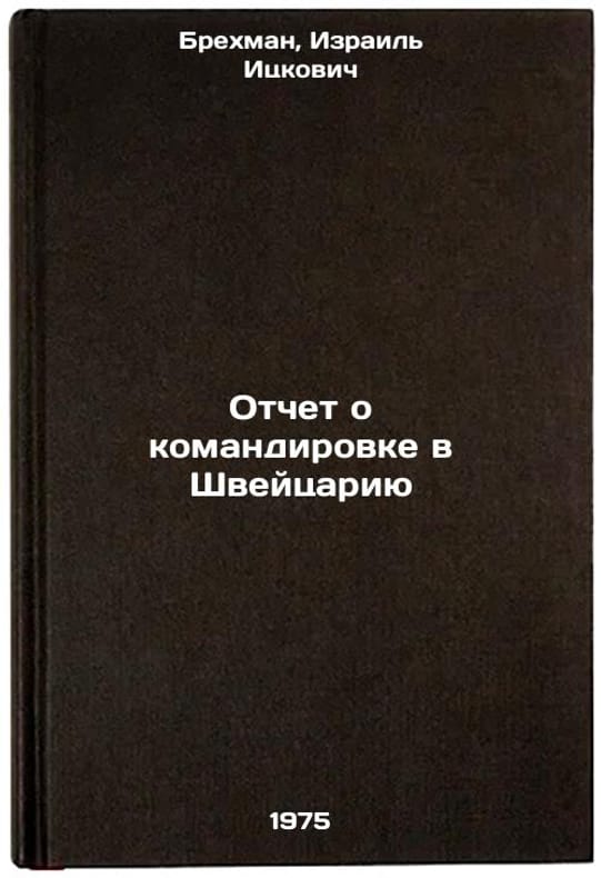 In Russian. Brekhman, Israel Itskovich. Report on mission to Switzerland. Moscow: 1975. Otchet o komandirovke v Shveytsariyu. In Russian /Report on a mission to Switzerland. All images are for identification of editions only. Several books of the same edition may be available. Please feel free to request photos of available books. SKU6911538