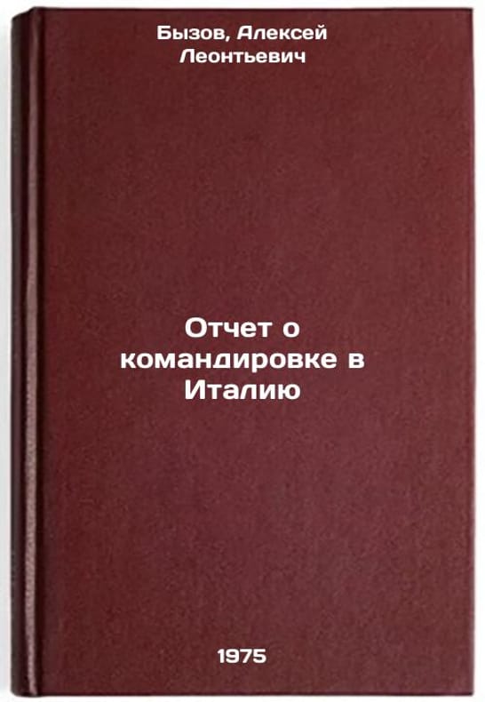 In Russian. Byzov, Alexey Leontievich. Report on mission to Italy. Moscow: 1975. All images are for identification of editions only. Several books of the same edition may be available. Please feel free to request photos of available books. SKU6912440