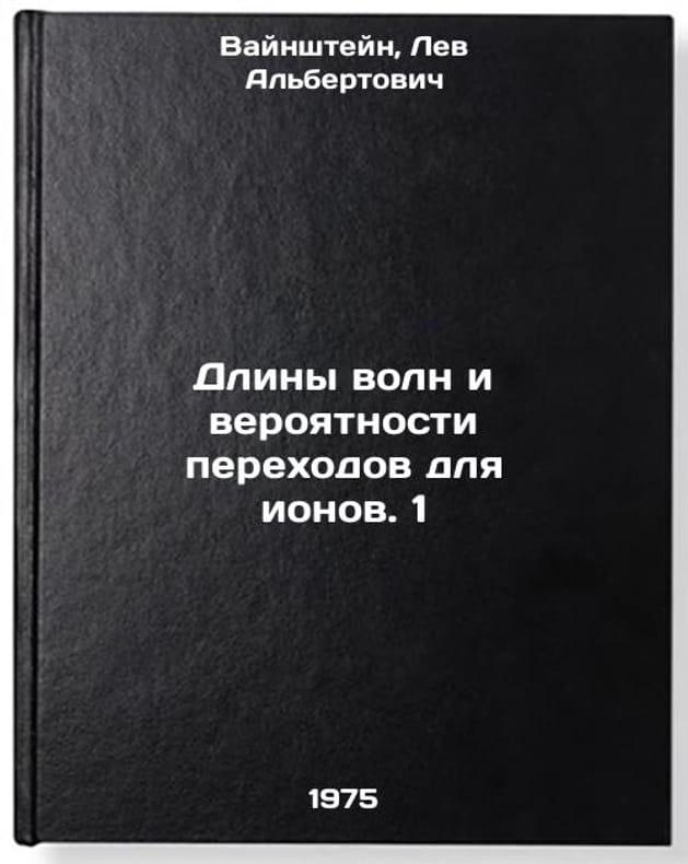 In Russian. Weinstein, Lev Albertovich. Wavelengths and transition probabilities for ions. 1. Moscow: 1975. Dliny voln i veroyatnosti perekhodov dlya ionov. 1. In Russian /Wavelengths and transition probabilities for ions. 1. All images are for identification of editions only. Several books of the same edition may be available. Please feel free to request photos of available books. SKU6912757