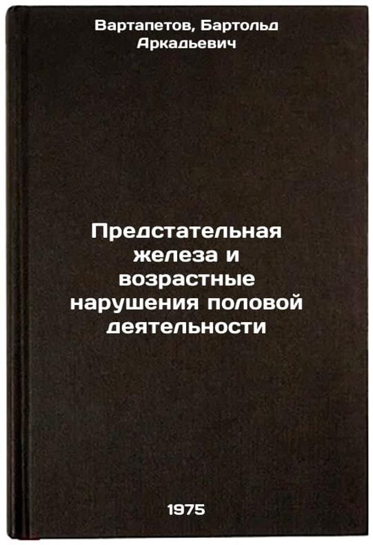 In Russian. Vartapetov, Bartold Arkadevich. The prostate gland and age-related sexual disorders. 1975. Predstatel'naya zheleza i vozrastnye narusheniya polovoy deyatel'nosti. In Russian /The prostate gland and age-related sexual disorders. All images are for identification of editions only. Several books of the same edition may be available. Please feel free to request photos of available books. SKU6913011
