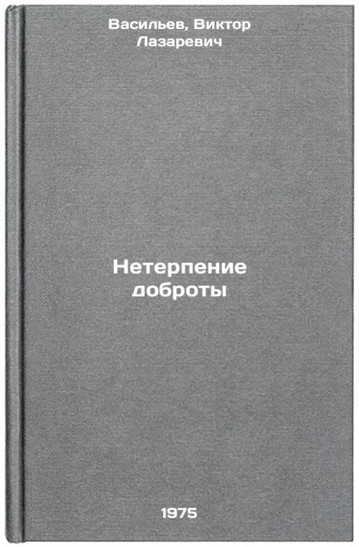 In Russian. Vasiliev, Viktor Lazarevich. Impatience of Kindness. Tbilisi: Sabchota Sakartvelo, 1975. All images are for identification of editions only. Several books of the same edition may be available. Please feel free to request photos of available books. SKU6913158