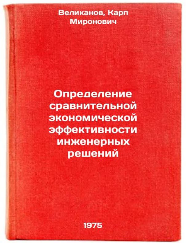 In Russian. Velikanov, Karp Mironovich. Determination of the comparative economic efficiency of engineering solutions. Leningrad: Machine-building, Leningrad Division, 1975. Opredelenie sravnitel'noy ekonomicheskoy effektivnosti inzhenernykh resheniy. In Russian /Determining the comparative economic efficiency of engineering solutions. All images are for identification of editions only. Several books of the same edition may be available. Please feel free to request photos of available books. SKU6913538