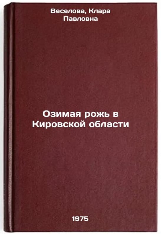 In Russian. Veselova, Klara Pavlovna. Winter rye in Kirov Oblast. Kirov: Volga-Vyat. edition, Kirov Division, 1975. All images are for identification of editions only. Several books of the same edition may be available. Please feel free to request photos of available books. SKU6913810