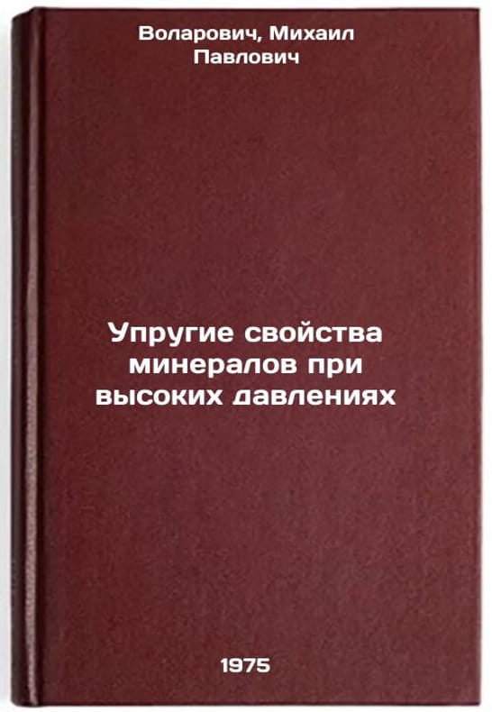In Russian. Volarovich, Mikhail Pavlovich. Elastic properties of minerals at high pressures. Moscow: Science, 1975. Uprugie svoystva mineralov pri vysokikh davleniyakh. In Russian /Elastic properties of minerals at high pressures. All images are for identification of editions only. Several books of the same edition may be available. Please feel free to request photos of available books. SKU6914687