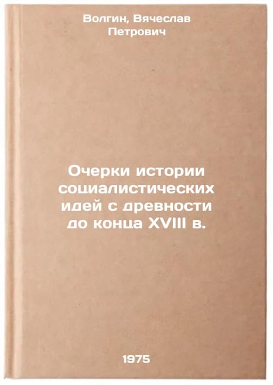 In Russian. Volgin, Vyacheslav Petrovich. Essays on the history of socialist ideas from antiquity to the end of the 18th century. Moscow: Science, 1975. Ocherki istorii sotsialisticheskikh idey s drevnosti do kontsa XVIII v. In Russian /Essays on the history of socialist ideas from antiquity to the end of the eighteenth century. All images are for identification of editions only. Several books of the same edition may be available. Please feel free to request photos of available books. SKU6914689
