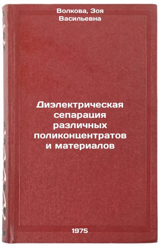 In Russian. Volkova, Zoya Vasilievna. Dielectric separation of various polyconcentrates and materials. Moscow: Nedra, 1975. Dielektricheskaya separatsiya razlichnykh polikontsentratov i materialov. In Russian /Dielectric separation of different polyconcentrates and materials. All images are for identification of editions only. Several books of the same edition may be available. Please feel free to request photos of available books. SKU6914826