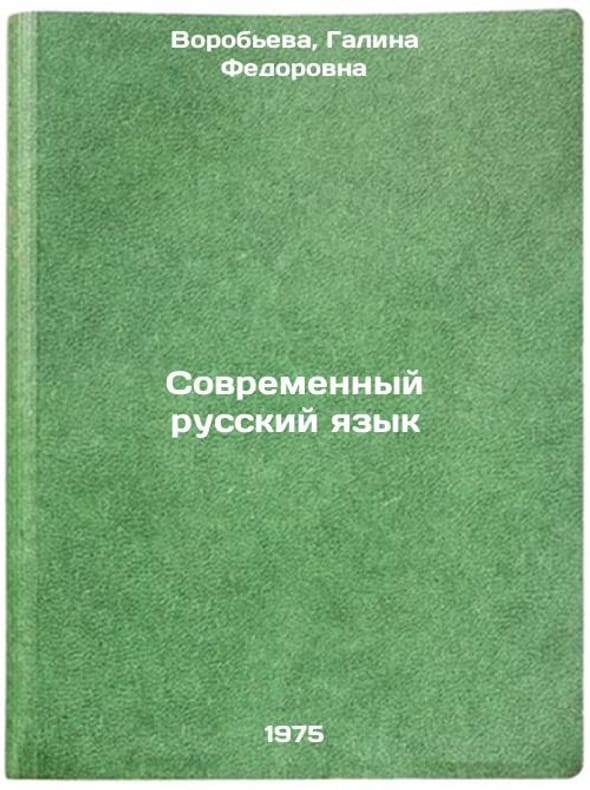 In Russian. Vorobyova, Galina Fedorovna. Modern Russian Language. Moscow: Russian Language, 1975. All images are for identification of editions only. Several books of the same edition may be available. Please feel free to request photos of available books. SKU6915883