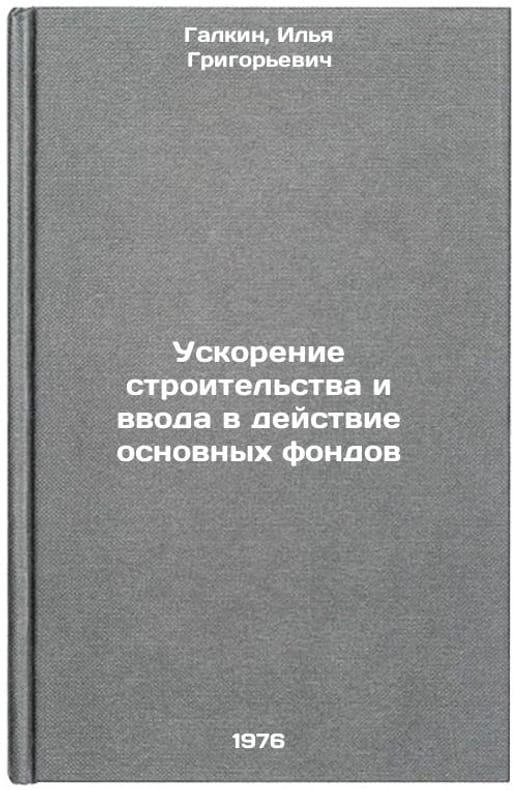 In Russian. Galkin, Ilya Grigorievich. Acceleration of construction and commissioning of fixed assets. Moscow: Znanie RSFSR, 1976. Uskorenie stroitel'stva i vvoda v deystvie osnovnykh fondov. In Russian /Accelerating construction and commissioning of fixed assets . All images are for identification of editions only. Several books of the same edition may be available. Please feel free to request photos of available books. SKU6917849