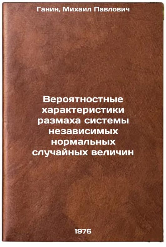In Russian. Ganin, Mikhail Pavlovich. Probability characteristics of the scale of the system of independent normal random quantities. Leningrad: 1976. Veroyatnostnye kharakteristiki razmakha sistemy nezavisimykh normal'nykh sluchaynykh velichin. In Russian /Probabilistic characteristics of the scale of a system of independent normal random quantities . All images are for identification of editions only. Several books of the same edition may be available. Please feel free to request photos of available books. SKU6918100