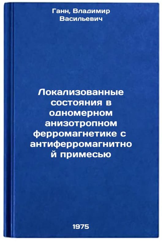 In Russian. Gann, Vladimir Vasilievich. Localized states in one-dimensional anisotropic ferromagnetics with antiferromagnetic impurity. Kharkiv: 1975. Lokalizovannye sostoyaniya v odnomernom anizotropnom ferromagnetike s antiferromagnitnoy primes'yu. In Russian /Localized states in one-dimensional anisotropic ferromagnetics with antiferromagnetic impurity. All images are for identification of editions only. Several books of the same edition may be available. Please feel free to request photos of available books. SKU6918119