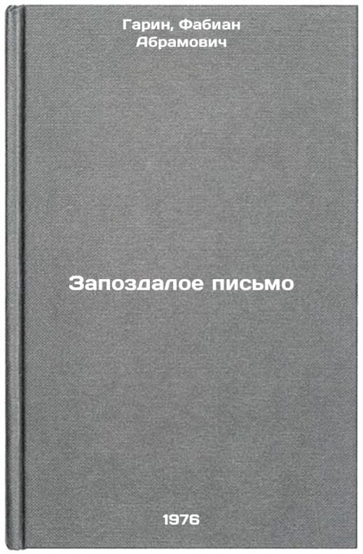 In Russian. Garin, Fabian Abramovich. Late letter. Moscow: Soviet writer, 1976. All images are for identification of editions only. Several books of the same edition may be available. Please feel free to request photos of available books. SKU6918252