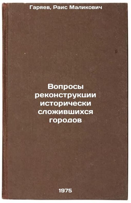 In Russian. Garyaev, Rais Malikovich. Issues of Reconstruction of Historically Established Cities. Moscow: Central STI by City and Architecture, 1975. Voprosy rekonstruktsii istoricheski slozhivshikhsya gorodov. In Russian /Rehabilitation of Historic Cities. All images are for identification of editions only. Several books of the same edition may be available. Please feel free to request photos of available books. SKU6918341