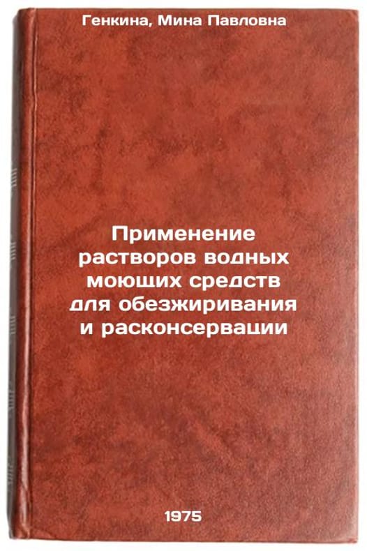 In Russian. Genkina, Mina Pavlovna. Application of solutions of aqueous detergents for degreasing and conservation. Leningrad: LDNTP, 1975. Primenenie rastvorov vodnykh moyushchikh sredstv dlya obezzhirivaniya i raskonservatsii. In Russian /Application of water-based detergent solutions for degreasing and preserving. All images are for identification of editions only. Several books of the same edition may be available. Please feel free to request photos of available books. SKU6918813