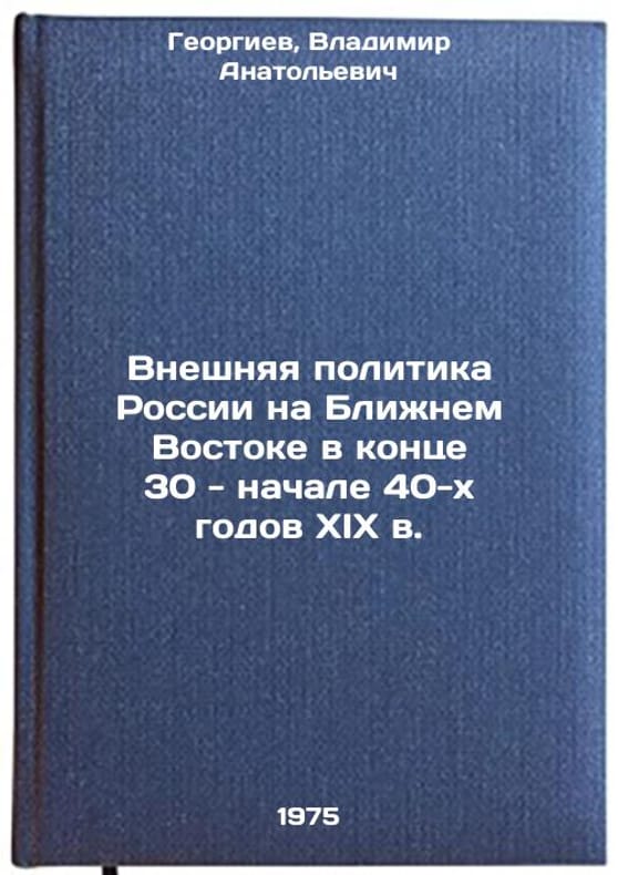 In Russian. Georgiev, Vladimir Anatolievich. Russia's foreign policy in the Middle East in the late 1930s and early 1940s of the 19th century. Moscow: Publishing House of Moscow, 1975. Vneshnyaya politika Rossii na Blizhnem Vostoke v kontse 30 - nachale 40-kh godov XIX v. In Russian /Russia's foreign policy in the Middle East in the late 1930s and early 1940s of the 19th century. All images are for identification of editions only. Several books of the same edition may be available. Please feel free to request photos of available books. SKU6919028