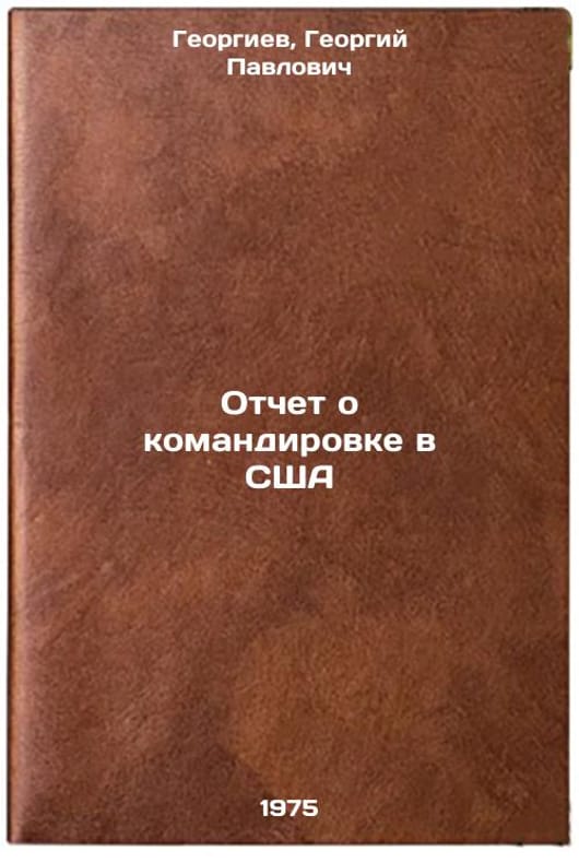 In Russian. Georgiev, Georgy Pavlovich. Report on a mission to the USA. Moscow: 1975. Otchet o komandirovke v SShA. In Russian /Report on a mission to the United States. All images are for identification of editions only. Several books of the same edition may be available. Please feel free to request photos of available books. SKU6919034