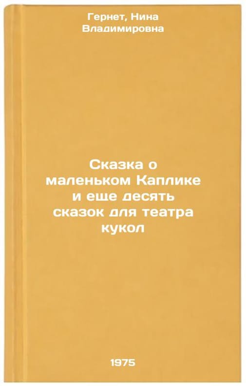 In Russian. Gernet, Nina Vladimirovna. The Tale of Little Kaplik and Ten Other Tales for the Puppet Theatre. Leningrad: Art, Leningrad Division, 1975. Skazka o malen'kom Kaplike i eshche desyat' skazok dlya teatra kukol. In Russian /The Tale of Little Kaplik and Ten More Tales for the Puppet Theatre. All images are for identification of editions only. Several books of the same edition may be available. Please feel free to request photos of available books. SKU6919346