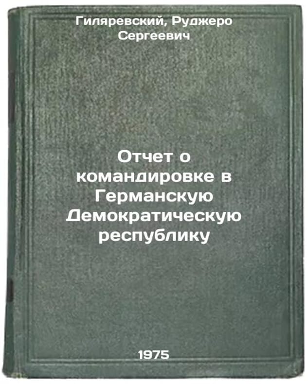 In Russian. Gilyarevsky, Ruggero Sergeevich. Report on a mission to the German Democratic Republic. Moscow: 1975. Otchet o komandirovke v Germanskuyu Demokraticheskuyu respubliku. In Russian /Report on a mission to the German Democratic Republic. All images are for identification of editions only. Several books of the same edition may be available. Please feel free to request photos of available books. SKU6919798