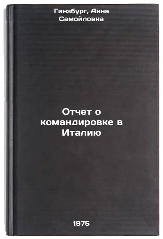 In Russian. Ginzburg, Anna Samoilovna. Report on mission to Italy. Moscow: 1975. All images are for identification of editions only. Several books of the same edition may be available. Please feel free to request photos of available books. SKU6919840