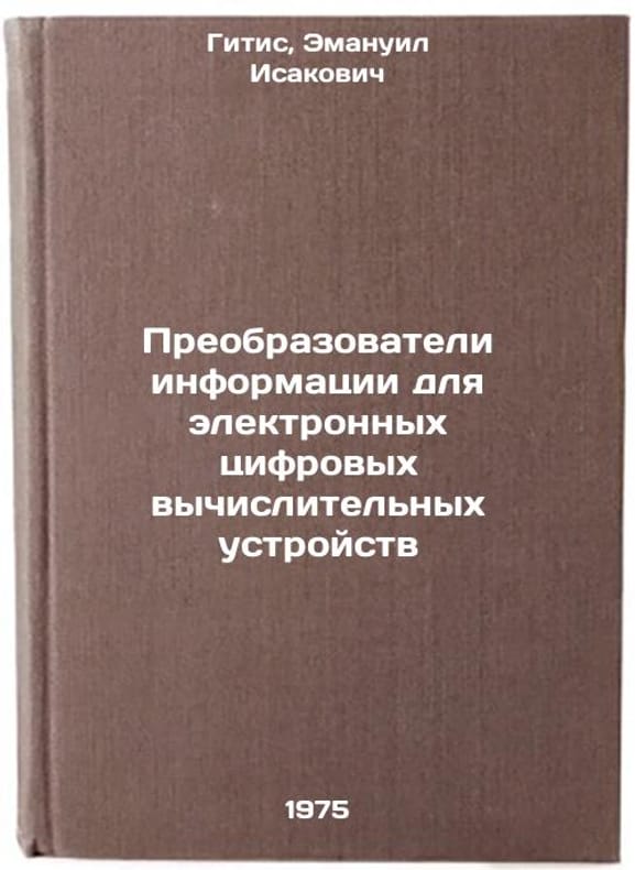 In Russian. Gitis, Emanuel Isakovich. Information converters for electronic digital computing devices. Moscow: Energia, 1975. Preobrazovateli informatsii dlya elektronnykh tsifrovykh vychislitel'nykh ustroystv. In Russian /Information converters for electronic digital computing devices. All images are for identification of editions only. Several books of the same edition may be available. Please feel free to request photos of available books. SKU6919982