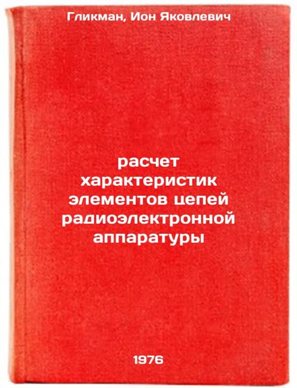 In Russian. Glikman, Ion Yakovlevich. Calculation of Characteristics of Electronic Equipment Circuit Elements. Moscow: Sovetsky Radio, 1976. raschet kharakteristik elementov tsepey radioelektronnoy apparatury. In Russian /Calculation of the characteristics of components of radio electronic circuits . All images are for identification of editions only. Several books of the same edition may be available. Please feel free to request photos of available books. SKU6920214