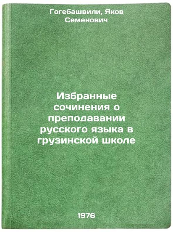 In Russian. Gogebashvili, Yakov Semenovich. Selected essays on Russian Language Teaching in a Georgian School. Tbilisi: Publishing House of Tbilisi, 1976. Izbrannye sochineniya o prepodavanii russkogo yazyka v gruzinskoy shkole. In Russian /Selected essays on Russian Language Teaching in a Georgian School . All images are for identification of editions only. Several books of the same edition may be available. Please feel free to request photos of available books. SKU6920501