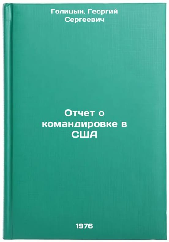 In Russian. Golitsyn, Georgy Sergeevich. Report on a mission to the USA. Moscow: 1976. Otchet o komandirovke v SShA. In Russian /Report on a mission to the United States . All images are for identification of editions only. Several books of the same edition may be available. Please feel free to request photos of available books. SKU6920722