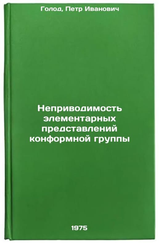 In Russian. Hunger, Pyotr Ivanovich. The Impossibility of Elemental Representation of a Conformal Group. Kyiv: 1975. Neprivodimost' elementarnykh predstavleniy konformnoy gruppy. In Russian /The failure of elementary representations of the conformation group. All images are for identification of editions only. Several books of the same edition may be available. Please feel free to request photos of available books. SKU6920913