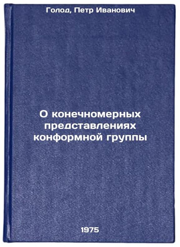 In Russian. Hunger, Pyotr Ivanovich. On finite representations of a conformation group. Kyiv: 1975. O konechnomernykh predstavleniyakh konformnoy gruppy. In Russian /On the finite representations of the conform group. All images are for identification of editions only. Several books of the same edition may be available. Please feel free to request photos of available books. SKU6920914