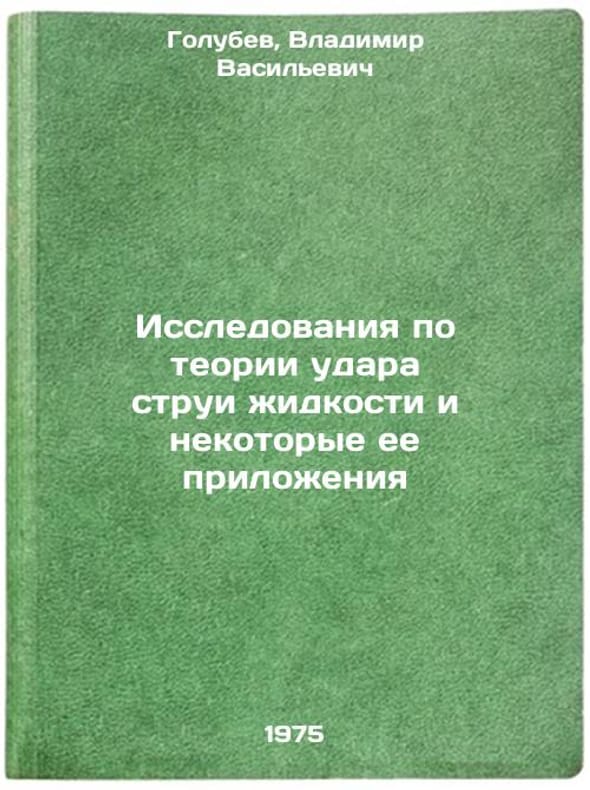 In Russian. Golubev, Vladimir Vasilievich. Research on the theory of liquid jet impact and some of its applications. Moscow: Publishing House of Moscow, 1975. Issledovaniya po teorii udara strui zhidkosti i nekotorye ee prilozheniya. In Russian /Research on liquid jet impact theory and some of its applications. All images are for identification of editions only. Several books of the same edition may be available. Please feel free to request photos of available books. SKU6921010