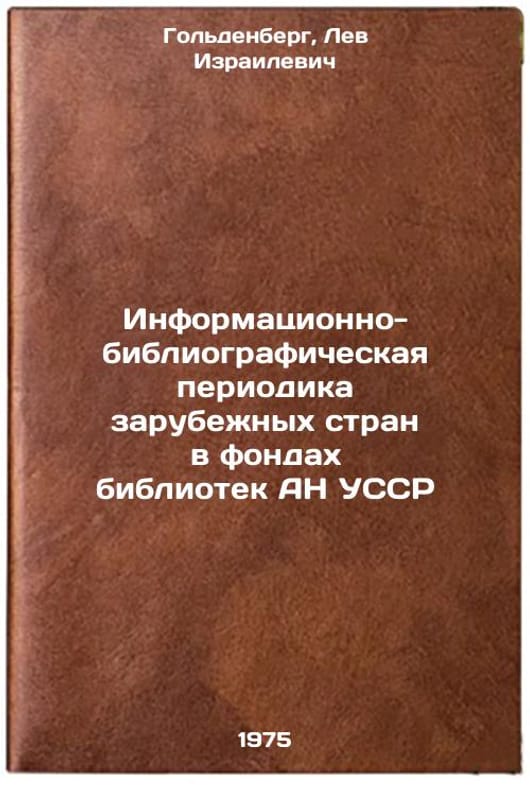 In Russian. Goldenberg, Lev Izrailevich. Information and bibliographic periodicals of foreign countries in the collections of libraries of the Academy of Sciences of the Ukrainian SSR. Kyiv: Nauk Dumka, 1975. Informatsionno-bibliograficheskaya periodika zarubezhnykh stran v fondakh bibliotek AN USSR. In Russian /Information and bibliographic periodicals of foreign countries in the collections of libraries of the Academy of Sciences of the Ukrainian SSR. All images are for identification of editions only. Several books of the same edition may be available. Please feel free to request photos of available books. SKU6921187