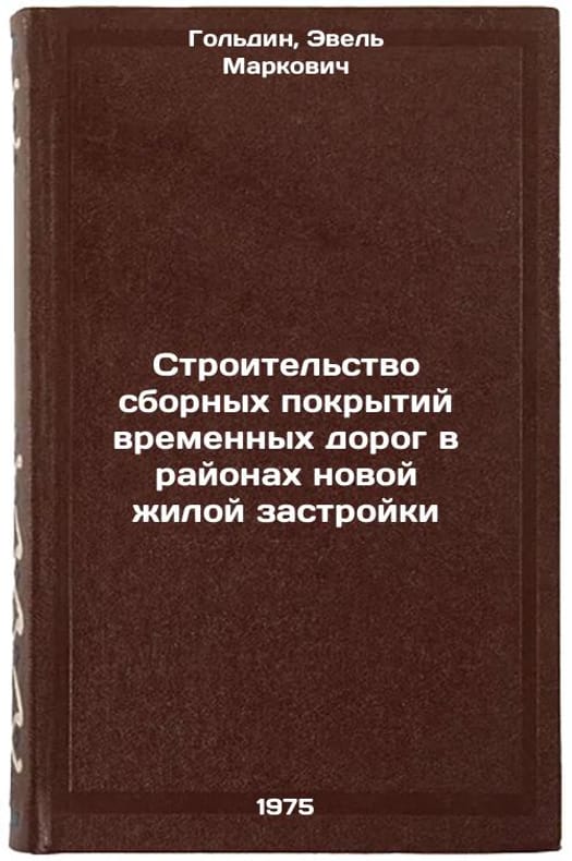 In Russian. Goldin, Evel Markovich. Construction of prefabricated paving of temporary roads in areas of new residential buildings. Moscow: GosINTI, 1975. Stroitel'stvo sbornykh pokrytiy vremennykh dorog v rayonakh novoy zhiloy zastroyki. In Russian /Construction of prefabricated temporary roads in newly built areas. All images are for identification of editions only. Several books of the same edition may be available. Please feel free to request photos of available books. SKU6921206