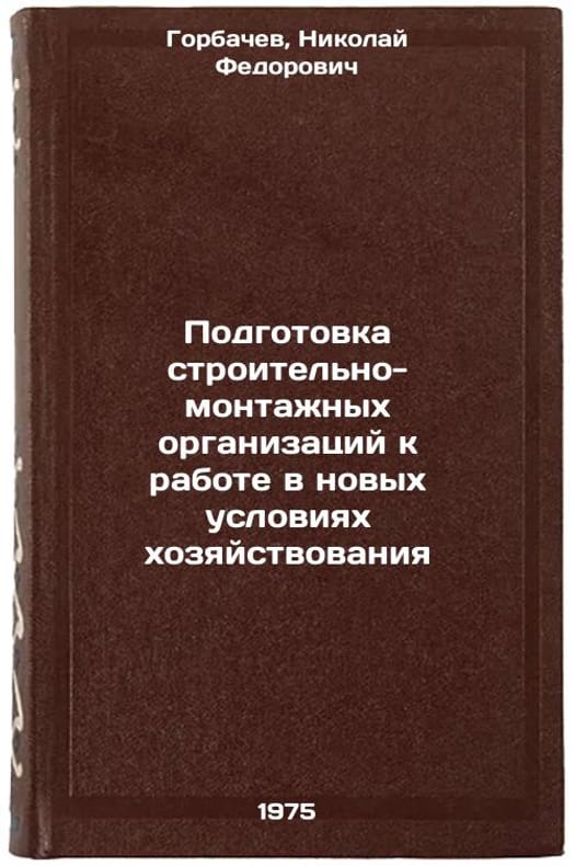 In Russian. Gorbachev, Nikolai Fedorovich. Preparation of construction and installation organizations for work in new economic conditions. Rostov n / a: 1975. Podgotovka stroitel'no-montazhnykh organizatsiy k rabote v novykh usloviyakh khozyaystvovaniya. In Russian /Preparing Construction and Installation Organizations for Work in the New Economic Environment. All images are for identification of editions only. Several books of the same edition may be available. Please feel free to request photos of available books. SKU6921520