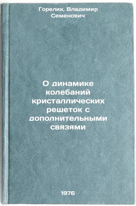 In Russian. Gorelik, Vladimir Semenovich. On the dynamics of oscillations of crystal latrines with additional bonds. Moscow: 1976. O dinamike kolebaniy kristallicheskikh reshetok s dopolnitel'nymi svyazyami. In Russian /On the dynamics of oscillations of crystalline latrines with additional bonds . All images are for identification of editions only. Several books of the same edition may be available. Please feel free to request photos of available books. SKU6921767