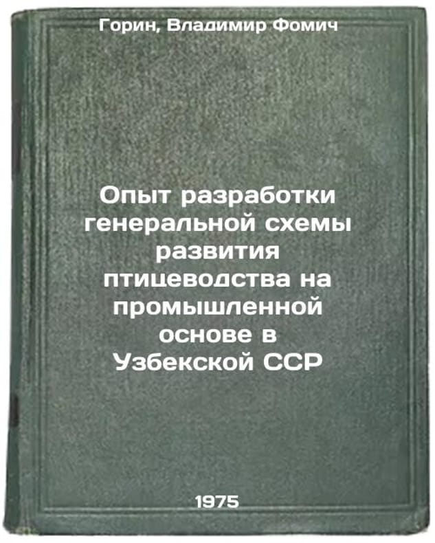 In Russian. Gorin, Vladimir Fomich. Experience of developing a general scheme for the development of poultry farming on an industrial basis in the Uzbek SSR. Tashkent: UzNIINTI, 1975. Opyt razrabotki general'noy skhemy razvitiya ptitsevodstva na promyshlennoy osnove v Uzbekskoy SSR. In Russian /Experience in developing a master scheme for the development of poultry farming on an industrial basis in the Uzbek SSR. All images are for identification of editions only. Several books of the same edition may be available. Please feel free to request photos of available books. SKU6921841