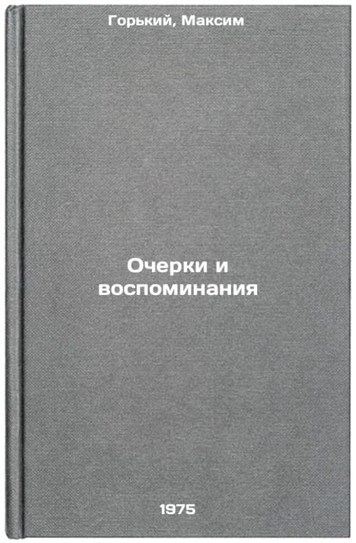 In Russian. Gorky, Maxim. Essays and Memories. Moscow: Soviet. Russia, 1975. All images are for identification of editions only. Several books of the same edition may be available. Please feel free to request photos of available books. SKU6922183