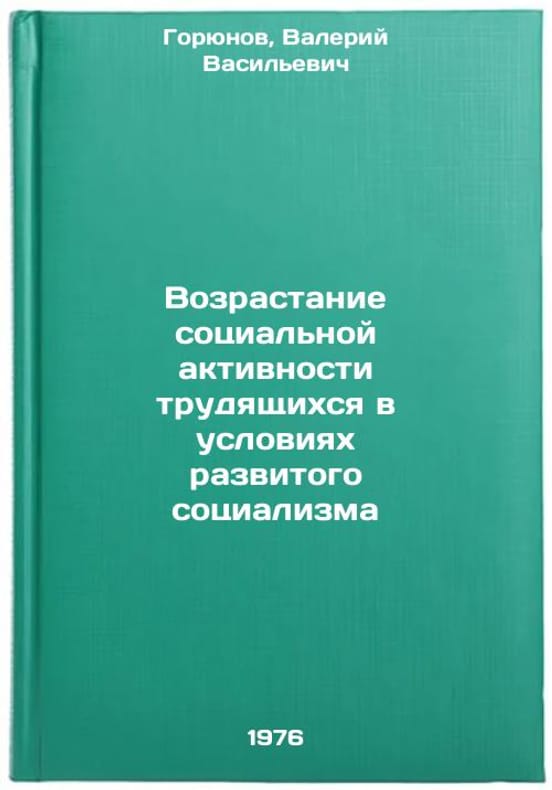 In Russian. Goryunov, Valery Vasilievich. Increasing Social Activity of Workers in Conditions of Developed Socialism. Moscow: Znanie, 1976. Vozrastanie sotsial'noy aktivnosti trudyashchikhsya v usloviyakh razvitogo sotsializma. In Russian /Increased social activity of workers under conditions of advanced socialism . All images are for identification of editions only. Several books of the same edition may be available. Please feel free to request photos of available books. SKU6922246